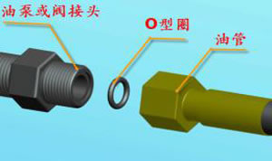 (1)所有的接頭均使用O型密封圈。O型密封圈簡單可靠,但安裝時一定要確保O型密封圈在槽內。在垂直面上安裝O型密封圈容易掉落,使用凡士林油膏或黃油,能夠使安裝工作更容易,安裝方法如下圖。