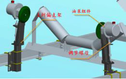 液壓糾偏裝置作用在上、下調心托輥上,皮帶跑偏時主動調整糾偏拖輥角度校正皮帶,不但可省掉立輥保護皮帶邊緣不受立輥摩擦損傷,而且快速校正皮帶。 自動檢測跑偏并予以校正,使皮帶始終處于合理狀態運行,對皮帶機安裝不當、運轉失靈、物料沖擊、負荷變化、皮帶斷面間伸長率不均勻造成皮帶跑偏有很好的調整作用。